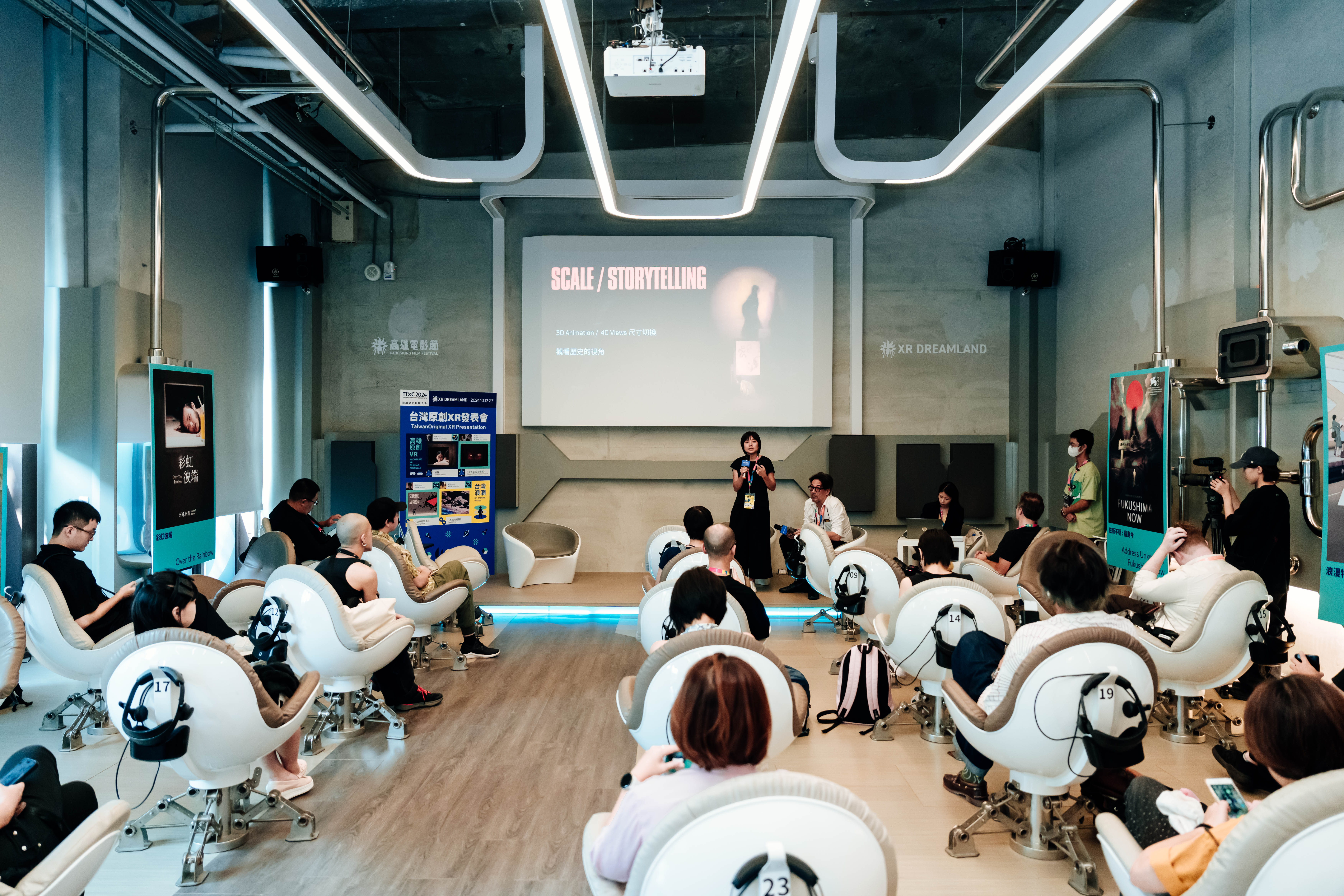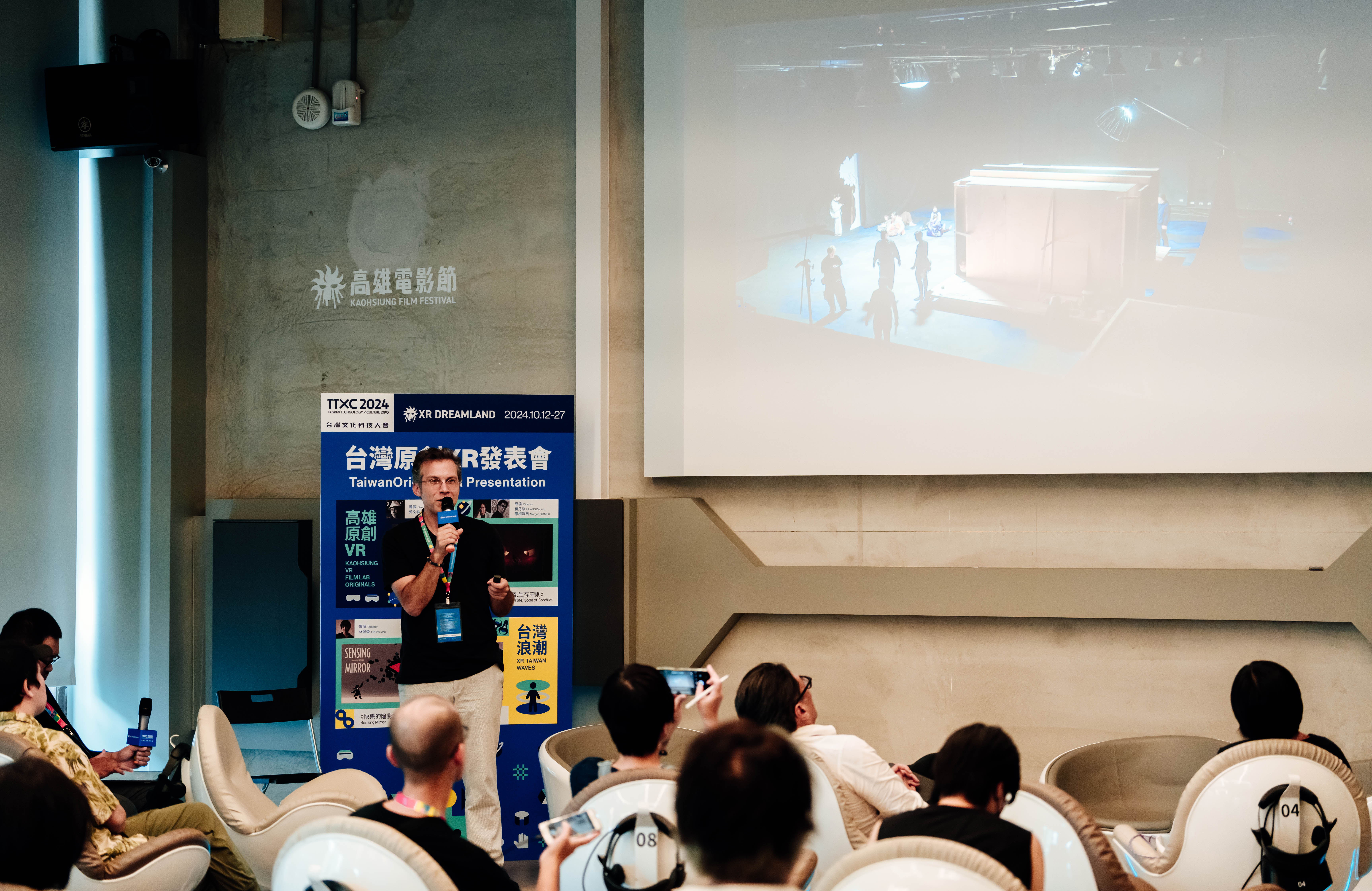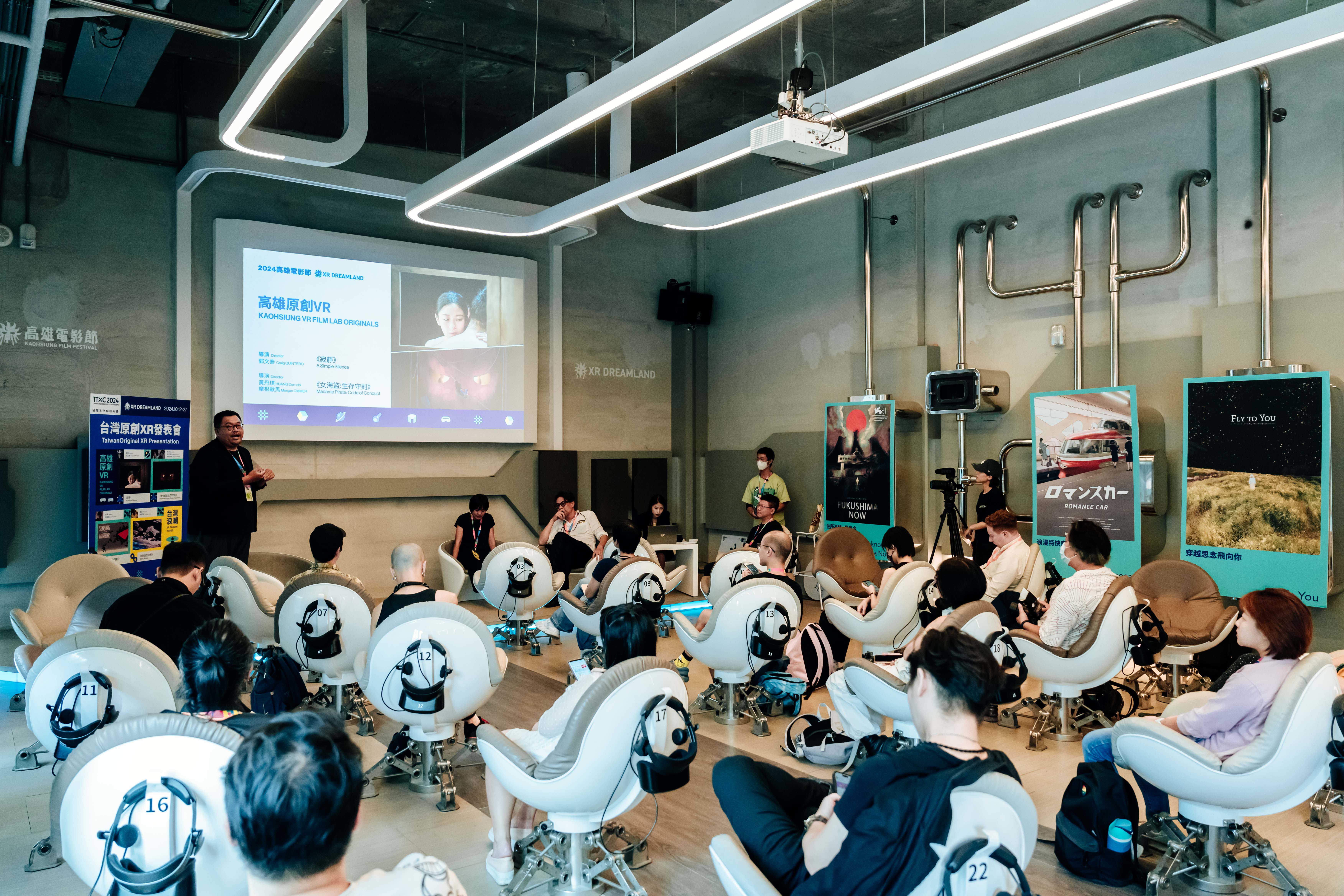 「高雄VR FILM LAB」迄今已逾50部作品,可謂全球VR圈最重要的獎助計畫。2018年高雄成立台灣第一間「VR體感劇院」,能量無限。《寂靜》與《女海盜:生存守則》便是高雄原創VR。更帶動了2023年文化部規劃投入中央資源,提出更具前瞻性的「文化黑潮 X-LAB計畫:XR沉浸式影像創作補助」,分為「概念開發組」、「製作拍攝組」與「多人互動組」三項組別。提案件數為116件,最終入選獲補助38件。(其中本日發表《快樂的陰影》為製作拍攝組;《黑色的翅膀》為多人互動組。)