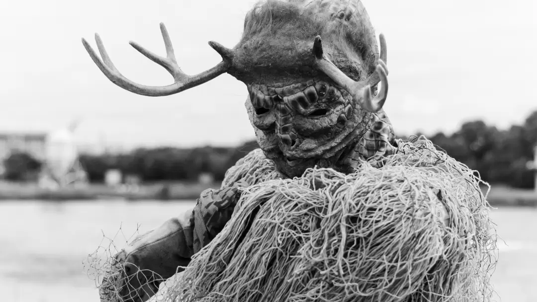 《臺陽筆記》曾記載著「鯊化鹿」傳說,是一隻能在鹿與鯊魚間轉化、並長著鹿角的幻獸。一日,帶有鹿角的半魚人從充斥黑水的魚塭內爬起,緩緩地往不斷排放廢棄物的市鎮逕直而去,他究竟是傳說中幻獸的再現,抑或是周遭居民集體所創造的「魚塭怪妖」?