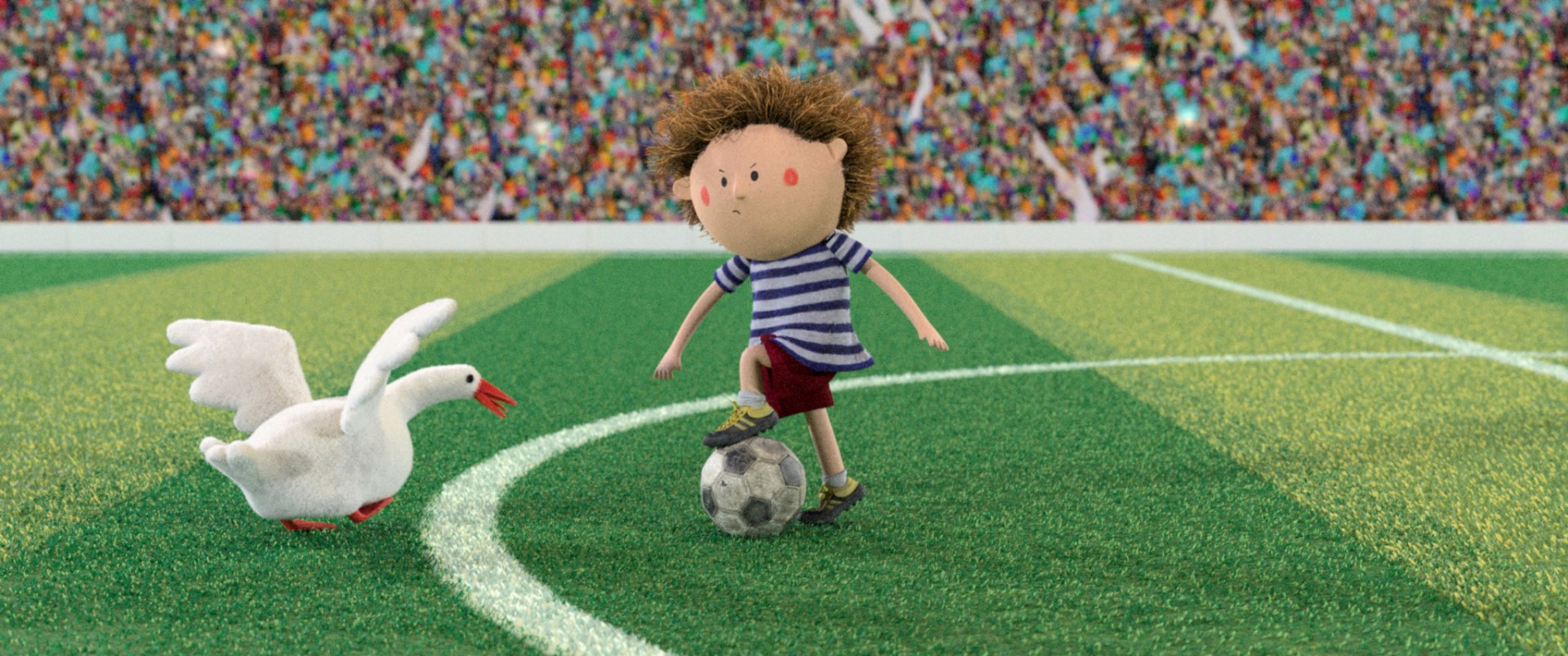 人鵝間的大戰,一觸即發…..夢想成為足球員的男孩,某天在家裡院子練習時,突然發現一隻喜怒無常的鵝出現在面前,為他的生活帶來許多困擾。看來,在達成夢想之前,英雄得過「鵝」這關!幽默逗趣的劇情中意外包裹真摯親情,詼諧自在的3D偶動畫,出了戲院後絕對會掛上大大微笑細細回味!