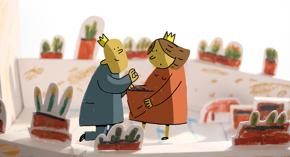 森林裡蹦出了一位小女孩,她獨自闖進了一個繽紛熱鬧且快樂富足的國度。國王與皇后有個能夠培育各種植物的花園,並擁有許多珍奇寶物,然而,他們卻也有個其他人都沒有的煩惱。小女孩該怎麼解決國王和皇后的煩惱呢?本作改編自童書,巧妙揉合了2D及3D實物拍攝,展現出這部匠心獨具且風格獨特的動畫傑作。