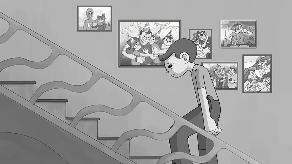 The boy’s family is hypnotized by the screens of their phones. They do not talk, laugh or have any interest in anything other than the lights of their screens. The boy tries to get his family back by building a machine that will take away their hypnotic phones: A big magnet.